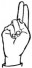 На ћирилици написано КОСТАДИН ВИДИЋ састоји се из 13 слова [?]. Исписано ћириличном једноручном азбуком за глувонеме: